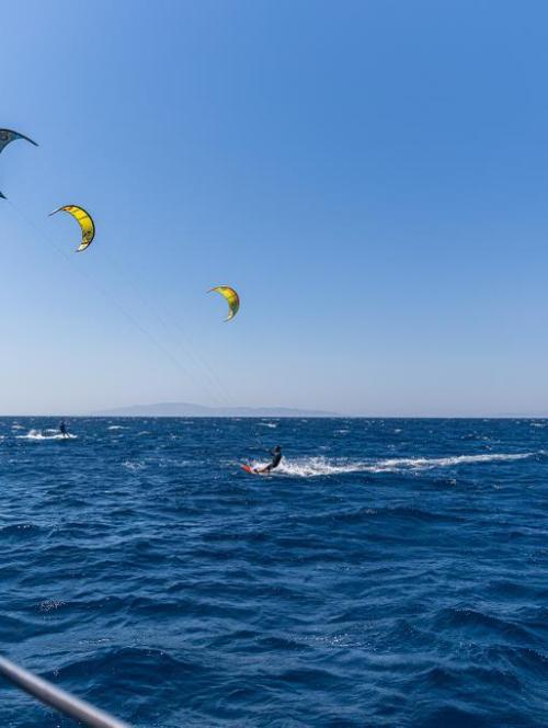 Join Amalias Viking tours on a Kitesurfing downwinder experience. We will have the best instructors to be by your side and the boat will follow for safety. For the family members and friends who wont be taking part, can stay on the boat with good music, snacks and drinks while watching.